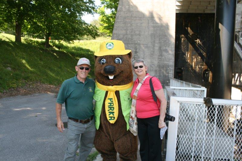 When we were in Scotland last year we took a boat ride on the lift lock in Falkirk. It is called the Falkirk Wheel and the two locks rotate rather than go up and down side-by-side as they do in Peterborough. It was very interesting to be able to compare the two types. We chatted quite awhile with the young man that opens the lock gates at the bottom for the boats to exit. While we were there two boats came down in the one lock and half an hour later one boat came down in the other lock. Needless to say John, who loves all things mechanical, enjoyed himself immensely.