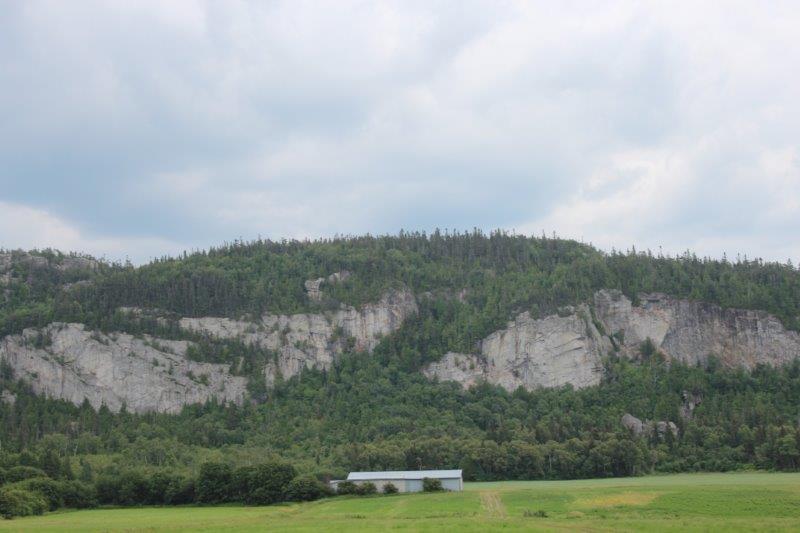 We left Quebec City at 11 am and drove to Rimouski, our first of five days on the Gaspè Peninsula. The sky was overcast all day so everything in the distance was grey. But – the good news – there are actually some almost-mountains here, rocky ones and everything. I felt so much better.