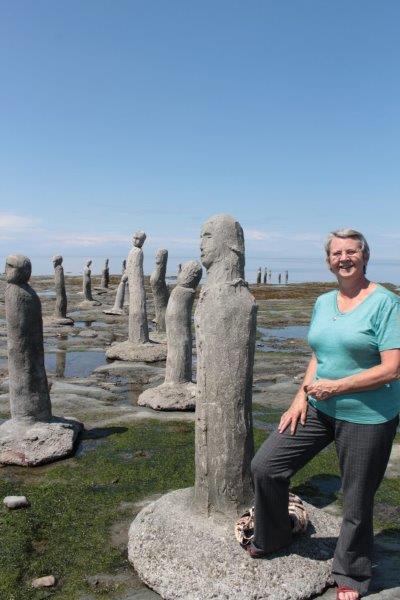 The helm We made a brief stop at Sainte-Flavie to see the cement sculptures of artist Marcel Gagnon. There are over 80 of these life-sized figures ‘rising out of the sea’ – as the St. Lawrence River is called in these parts because it is so wide here you cannot see the other shore. As a matter of fact the ferry that sails from Matane (1/2 way between Rimouski and Ste-Anne-des-Monts)and Baie Comeau in Eastern Quebec takes 2 1/2 hours to cross the river.