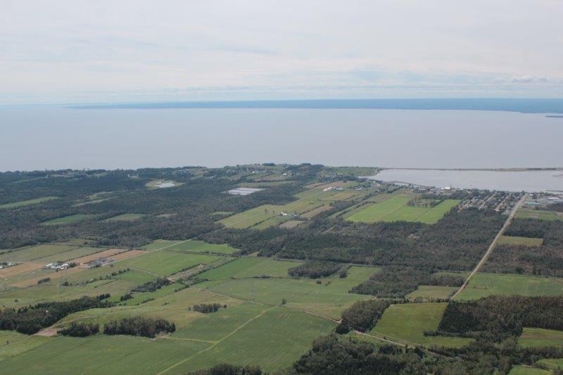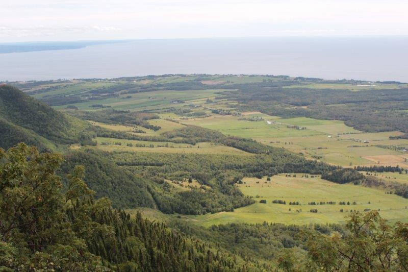 The road was paved all the way up; narrow, winding and very steep, but the view at the top was phenomenal! There is a small chapel that was built in the 1800’s and has been encased in a new, larger structure that houses art and history exhibits. But the real gem was the 133 meters (400′) of boardwalk around the edge of the 555 meter (1820′) high hill. This gave us a 270 degree view of the farm land, the Chaleur Bay, the town and marina of Carelton, and the forests for miles and miles. It was gorgeous. Unfortunately my new laptop does not have my photo-stitch program on it so I am not able to stitch the pictures together to give you a real sense of the immensity of the view. Well worth the drive up and the cautious drive down again.