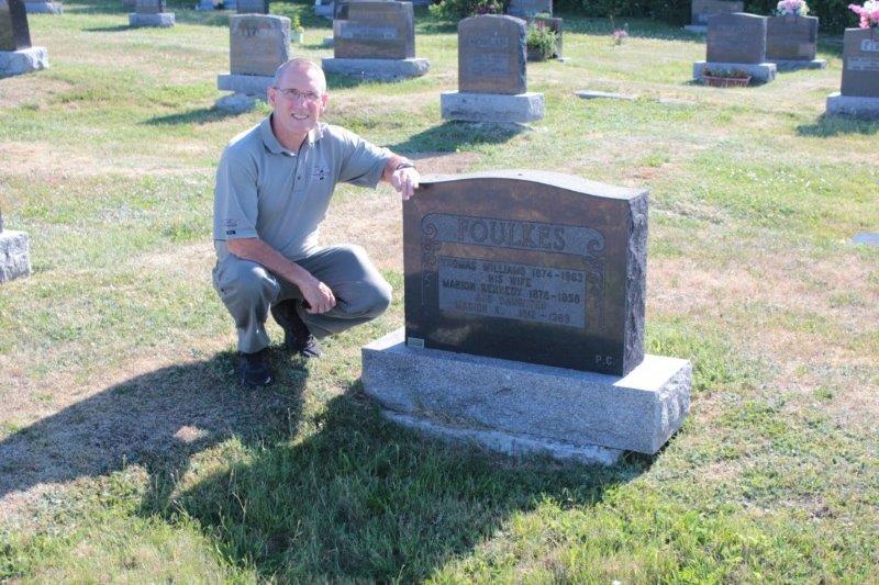 We were following the directions of Stella, our GPS, to our hotel and drove up this narrow back lane past a cemetery. John says, “I think that is it.” Our hotel was three blocks away so after we put the luggage in our room we went back and took a look see. Thankfully the cemetery was not really large. We started checking the graves on the hill – no Foulkes marker. We made our way to the far side – no Foulkes marker. Finally we looked on the flat area near the entrance. Behold – Foulkes; Thomas Williams, Marguerite Kennedy and their daughter Marion K. What are the odds??? I mean really!