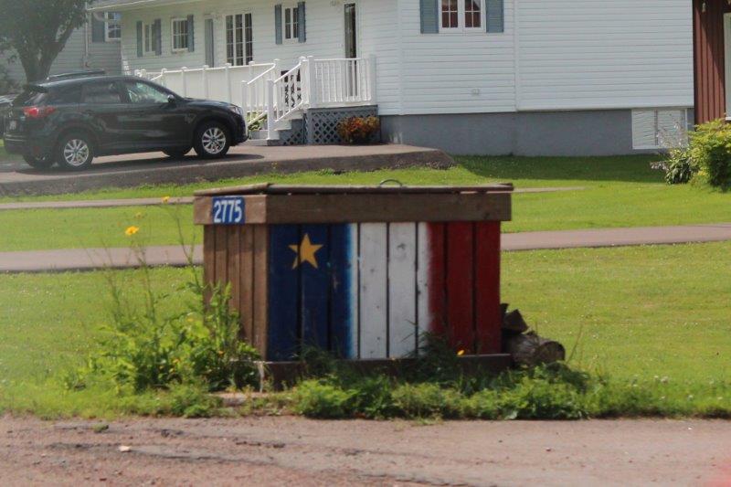 New Brunswick was the first bi-lingual province so almost everyone is fluent in English and French. They converse with each other in French but switch to English as soon as they hear “Hello” instead of “Bonjour.” They are fiercely proud of their heritage and the Acadian Flag (French flag with a yellow star in the upper left corner) is flown everywhere. Many houses have the flag painted on lobster traps on the lawn, on mini-lighthouses, on their family name sign on the house, on light posts and mailboxes.