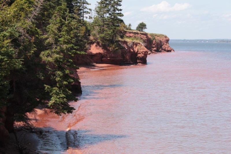 We loved the small bit of PEI we have seen so far. It really does have very red dirt, which is obviously very fertile as the crops we saw looked very lush. PEI is known for potatoes and we saw many acres of them, but we also saw wheat, barley, beans, alfalfa and other crops. The highest point on the island is 152 meters (499′) above sea level so it is very flat.
