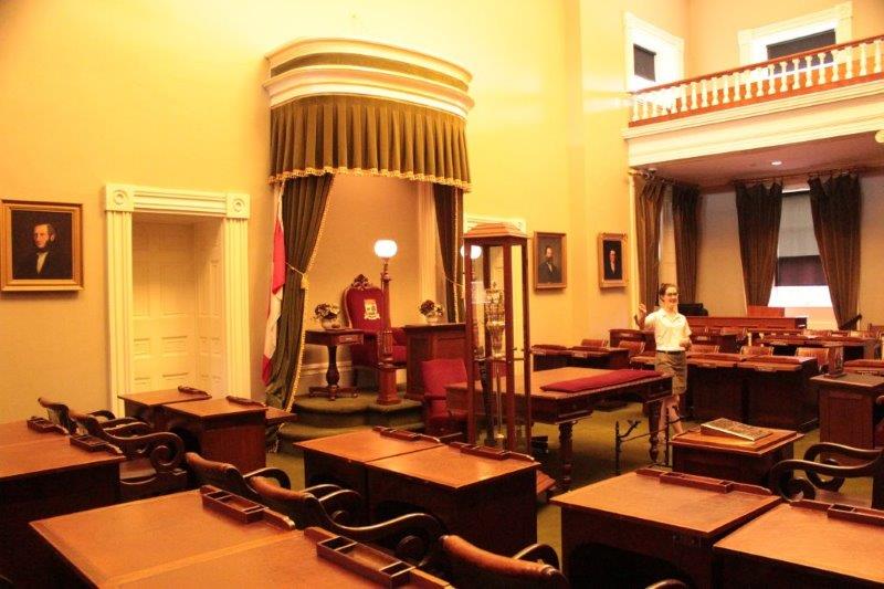 We rounded the peninsula and made our way to Charlottetown and found Province House where the first steps to Canada’s Confederation were made at the Charlottetown Conference held in this very building Sept 1, 1864 – 150 years ago this year. Pretty cool! The 27 Members of Parliament in PEI still sit in the same chamber on the same chairs!