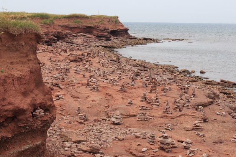 Fifth stop was our longest: at North Cape. The Canadian Wind Energy Institute is located here to do research on wind energy. They provide data from their wind turbines to many companies and countries. North Cape allows 300 degrees of access to wind and has rapidly changing weather, severe wind gusts, and icy temperatures so it is an excellent place to procure lots of information for study and technological advancement in the field of wind energy. We did not tour the interpretive center, but did take a short walk around the point. North Cape is also where the Northumberland Strait between Nova Scotia/New Brunswick and PEI and the St. Lawrence River meet. The longest natural rock reef in North America is located here and at low tide you can walk out on the rocks for a kilometer. There were so many shipwrecks caused by the reef that the early pioneer community fabricated their own makeshift warning light (no information was provided on what that was) and a permanent lighthouse at the Cape was a major item on PEI’s ‘wish list’ to join Confederation (like the CNR railway line).