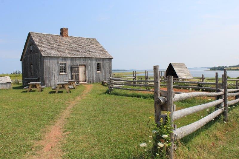 There were two other buildings beside the bank (which I can’t believe that neither of us photographed). One was Doucet house, probably the oldest building in PEI, built in 1764; home to Mr. & Mrs. Doucet and their nine children. This house was lived in until 1987 when the owners wanted to make a bigger house and the Friends of Farmer’s Bank brought it to the site and spent 5 years restoring it. All of the darker wood in the floors and walls is original to 1764