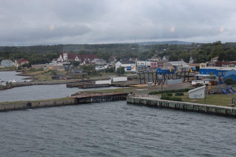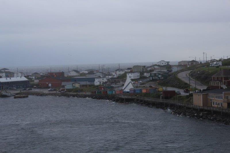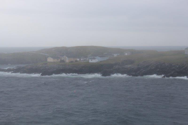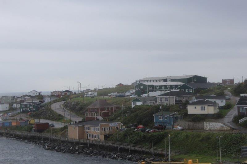 Part way across the Gulf of St. Lawrence the wind was accompanied by rain and it rained all the way to Channel-Port aux Basque. Newfoundland has been experiencing a heat wave of late – days of 30-33 C (very much above normal for this area) so they badly need rain. For them we are pleased (I wish BC would get some too to help with the forest fire situation at home), but for us, we want some non-rain days especially when we do our boat tour in Gros Morne National Park. I really want to see those 2000′ cliffs from the water.