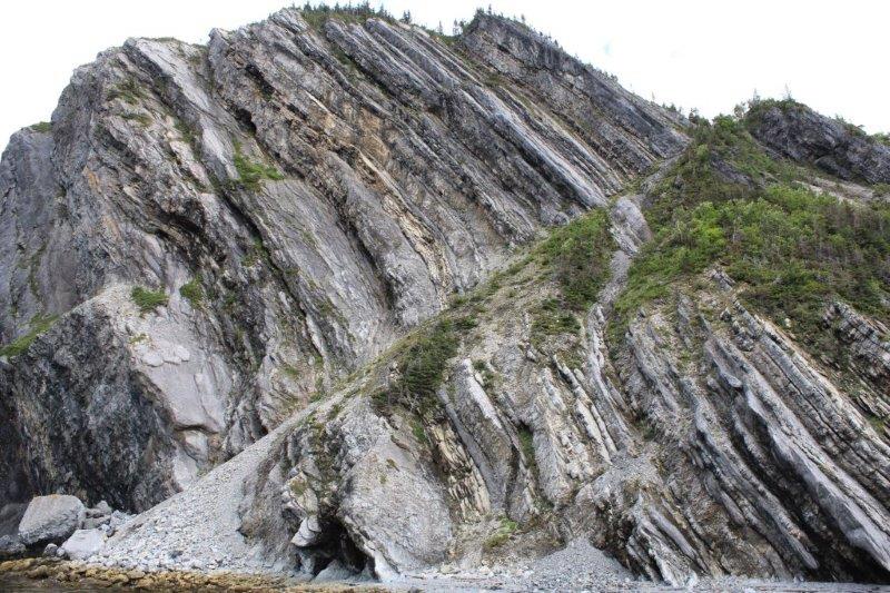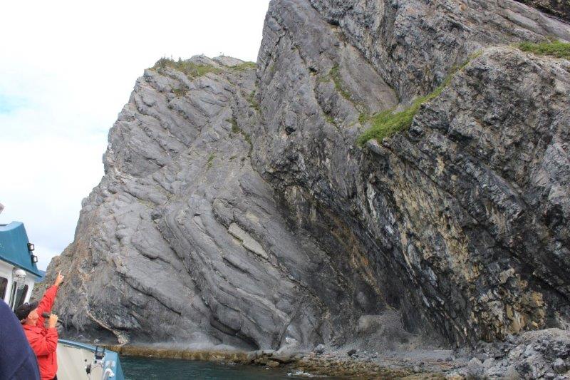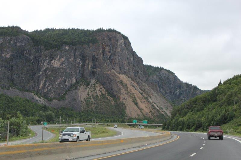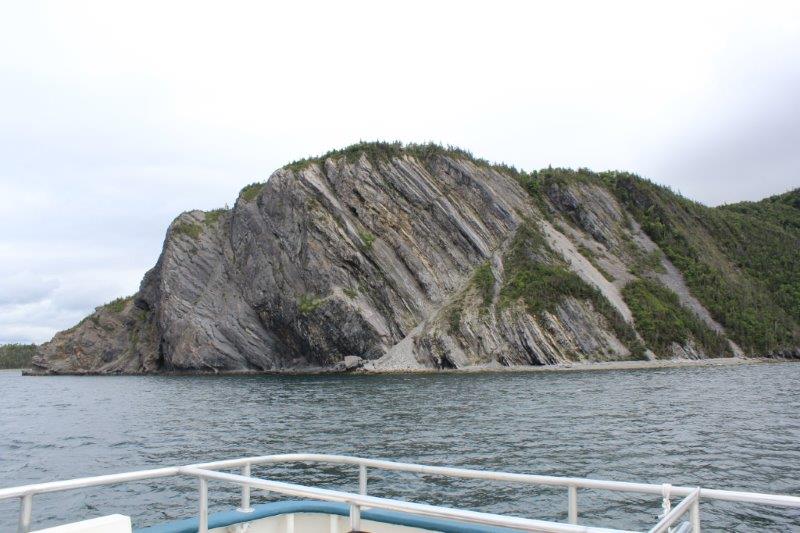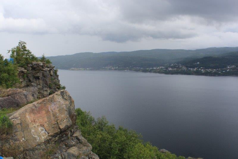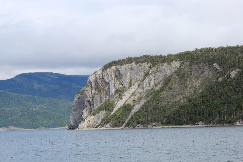 At Norris Point we boarded the boat for our two hour cruise on the South Arm of Bonne (pronounced Bon) Bay to see the scenery and the spectacular Tablelands. But…..the stupid clouds came in and covered the top of everything so it wasn’t as spectacular as it might have been. And….aside from a few interesting rock outcroppings and the cloud-topped Tablelands we could just as well have been spending our afternoon on Shuswap Lake. It was a nice trip, we talked to some nice people, but I admit I was a little disappointed. Most of the rest of the people were in awe. I guess I am too used to spectacular scenery living where I am fortunate enough to live. But, all in all it was a fine day – and we only had clouds, no significant amount of rain which was very nice.