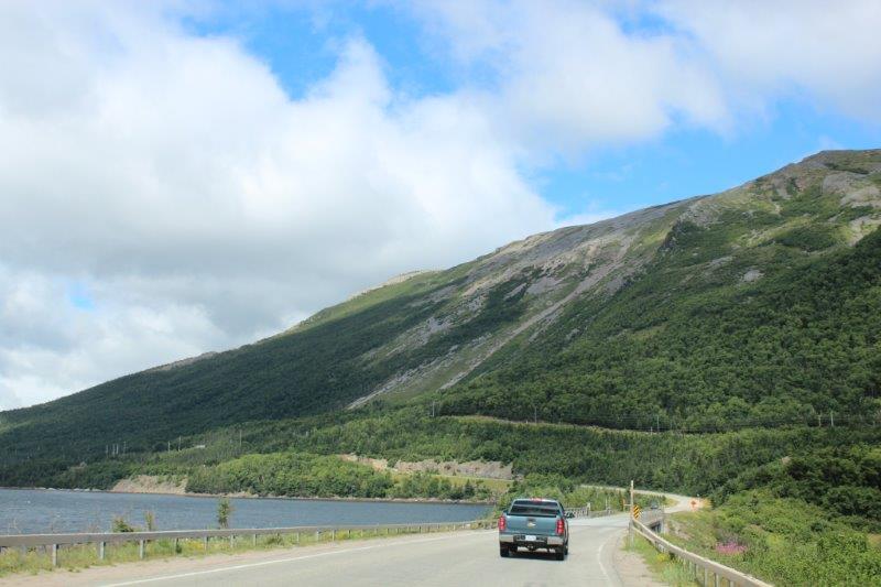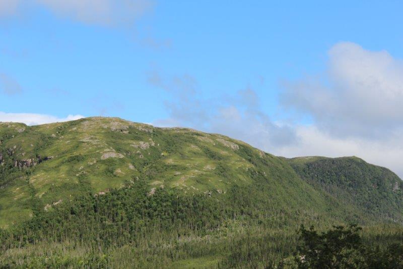 The Tablelands in the distance, which are a slice of an ancient ocean floor; one of the best and most accessible examples of exposed mantle material in the world. This geological wonder has made Gros Morne National Park a UNESCO World Heritage Site. Surrounded by green forest, this barren rock is a complete aberration; it shouldn’t be here at all, let alone as high as it is. Virtually nothing grows on it due to the high iron content of the rock. We plan to drive up to see it at close range on our way back down from St. Anthony next week.