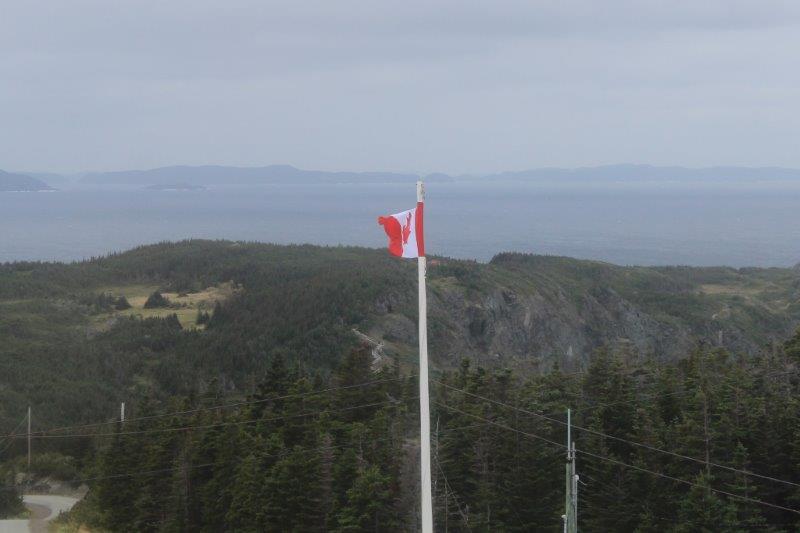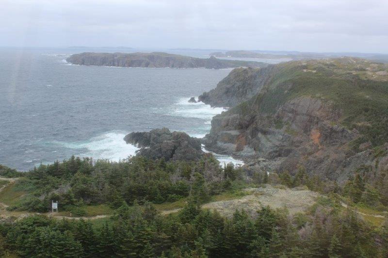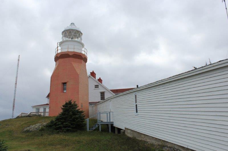 The former light keepers house is now a small museum about the by-gone days of wooden boat building in Newfoundland. Because we were freezing we decided to go and look around and have a chance to warm up inside. When we bought our ticket for the museum we were asked if we also wanted to climb up to the light. I love lighthouses and we hadn’t done our stair climbing yet today so I said we would. It was only 55 steps to the top, so not too arduous. The view was lovely even with the dark clouds and the wind was so strong you could hear it batter the glass. The poor flagpole was arcing back and forth and a third of the flag was wrapped around the top thrashing about.