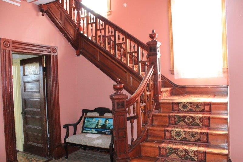 The stair rail came from Britain in three pieces. It was made by the same firm that did work on the Titanic.