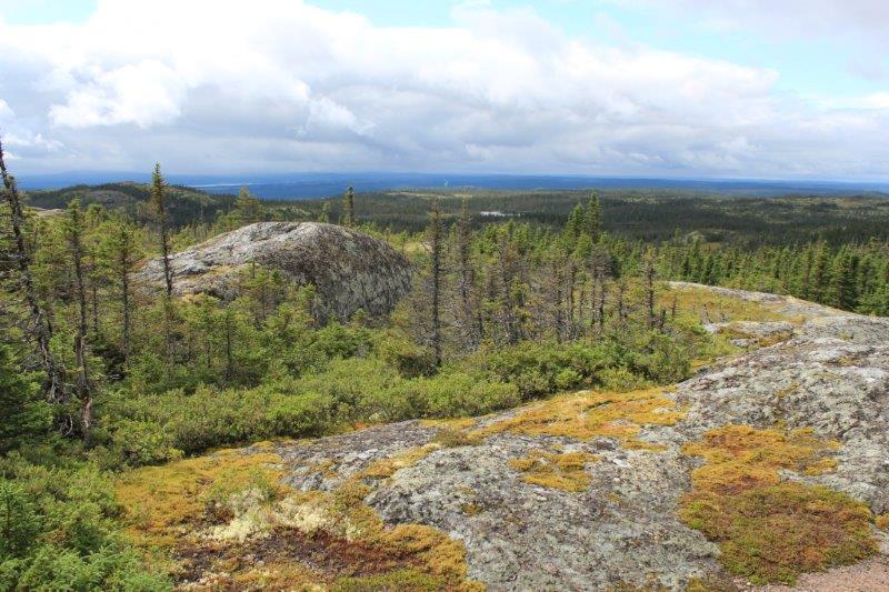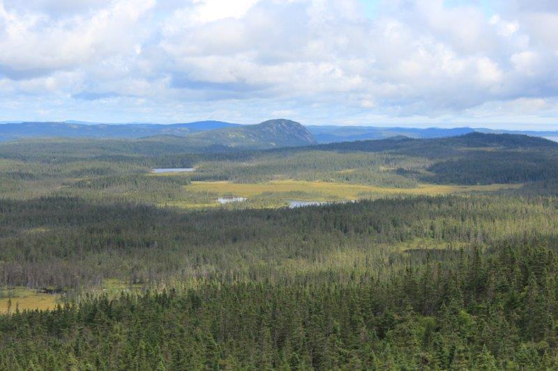 First was Blue Hill which was located 7 km from the highway up a gravel road. There was a great view over the forests punctuated with lakes and ponds (Ponds in NL are small lakes, not marshy water – although some places called Ponds are bigger than some places called Lakes – go figure).