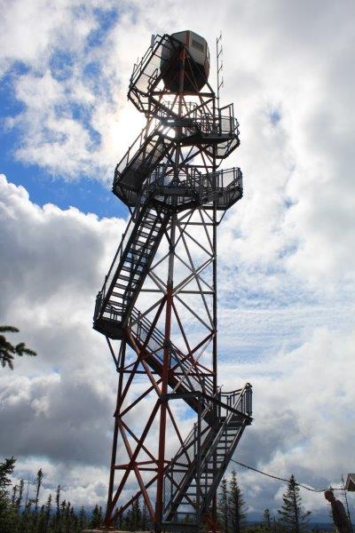 The second lookout was Ochre Hill; this too was a lengthy drive up a gravel road. From the parking lot we walked up the path and the steps and along the boardwalk looking out over the forest and to the open Atlantic water at the end of Clade Sound. There is a forestry fire watch tower that we were able to climb as far as the last stairwell below the tower hut. With the day so lovely it was well worth it.