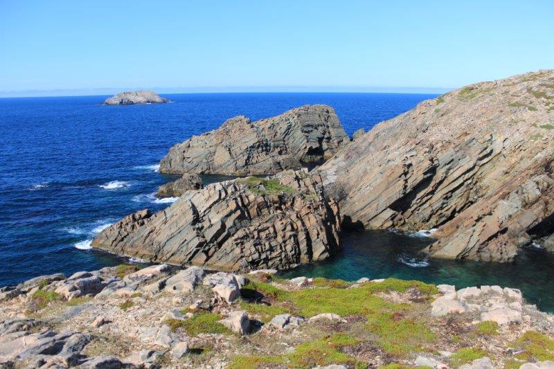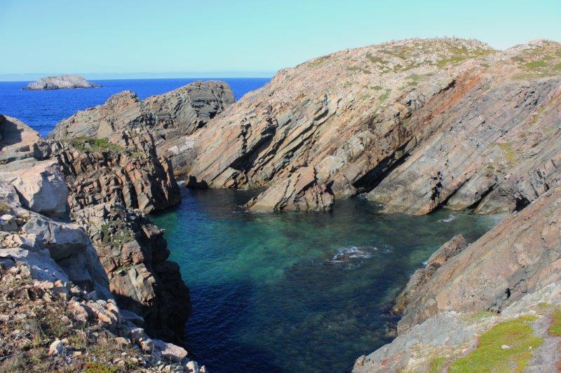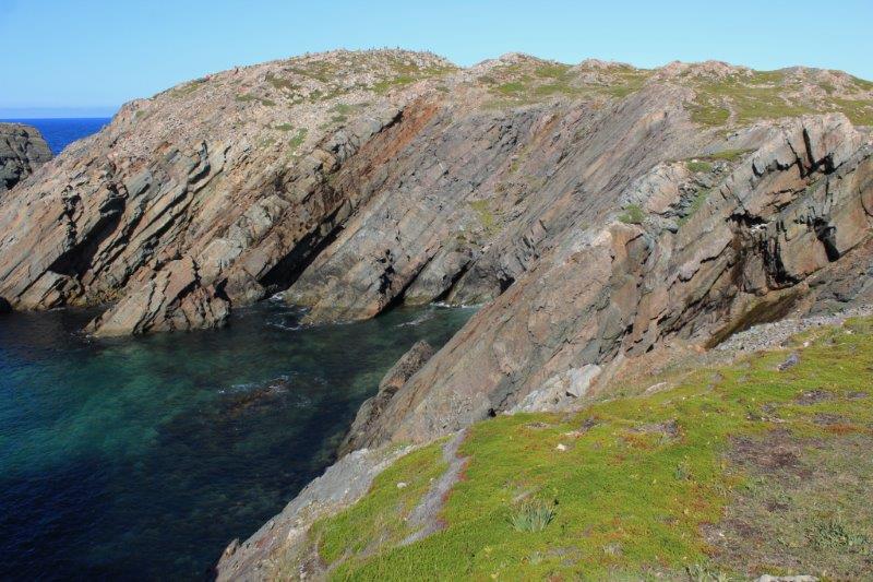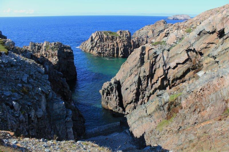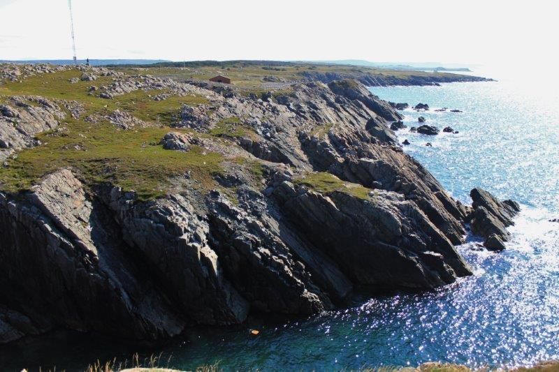 We saw so many lovely boulders and rocks in the shallow shore waters on Saturday but today’s rocks created huge cliffs or stone islands. The coast around Bonavista Lighthouse is very rugged with sheer drops of 100′. Wandering around the clifftops was really cool.