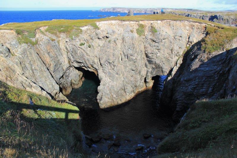 After we left the Cape we drove 2 km along a gravel road to The Dungeon Provincial Park where there is a collapsed ocean cave; creating a huge bowl with two open arches to the water.