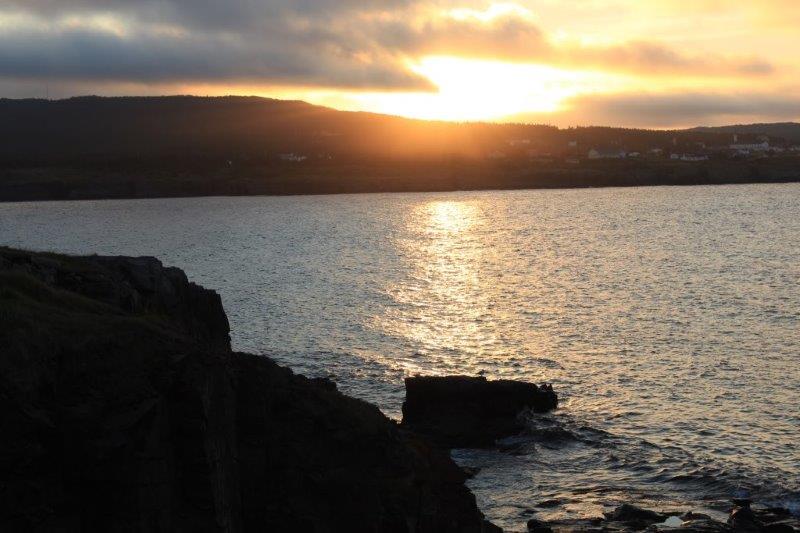 After visiting the memorial we drove another kilometer to Maberly. We walked the path to the cliff edge as the sun was beginning to set. Just off shore there is a gigantic rock that is a popular hangout for the Atlantic Puffin (also known as the common puffin) who breed and nest in Newfoundland every spring and summer. They are small members of the Auk family.