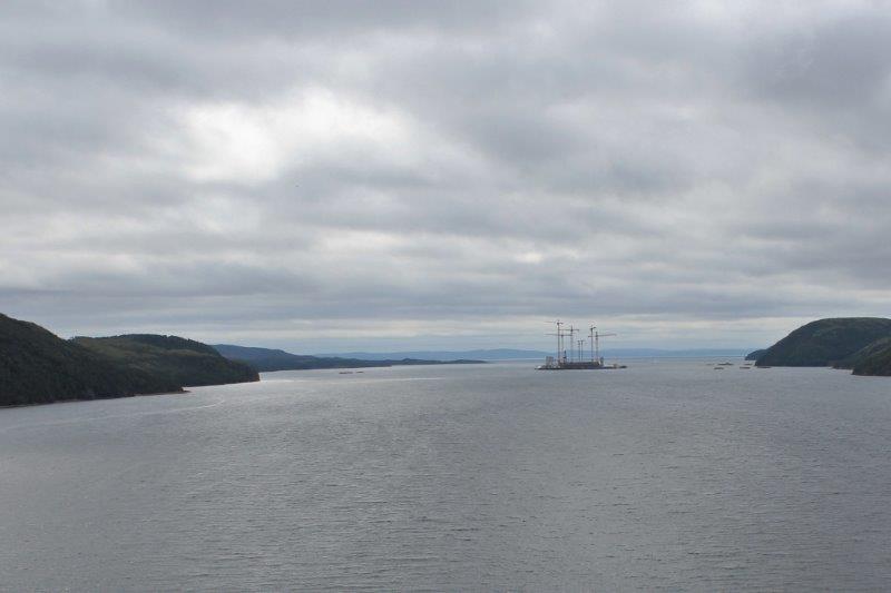 At the end of the road in Sunnyside you could see the two hills on either side of the inlet and in the middle of the water between was a platform with five or six large cranes on it and many small floating platforms around it. We couldn’t figure out what it was so John stopped on the way back and asked a fellow coming out of his driveway on his ATV (lots of people use ATV’s to drive around in their town and as soon as the snow falls they switch to snowmobiles). The big platform was a 4 1/2 year construction project of a gravity base for an oil drilling rig. When completed it will be towed out to the Grand Banks and a rig will be put on it. Newfoundland currently has 4 oil platforms and they are pumping 500,000 barrels of oil a day in the Grand Banks.
