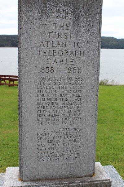 Shag Rock Our next stop was by far the most interesting. We were at Heart’s Content about halfway up Highway 80 on the Baccalieu Peninsula and stopped at the Provincial Historic Site Cable Station. In 1866 the trans-Atlantic cable came ashore at Heart’s Content from Valencia, Ireland and linked Europe with North America; thus providing instant communication between the continents.