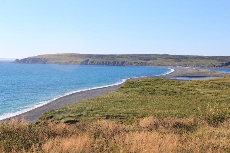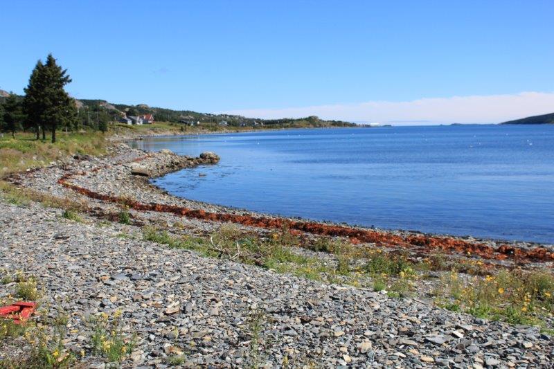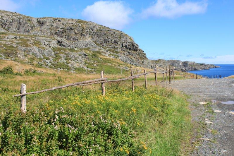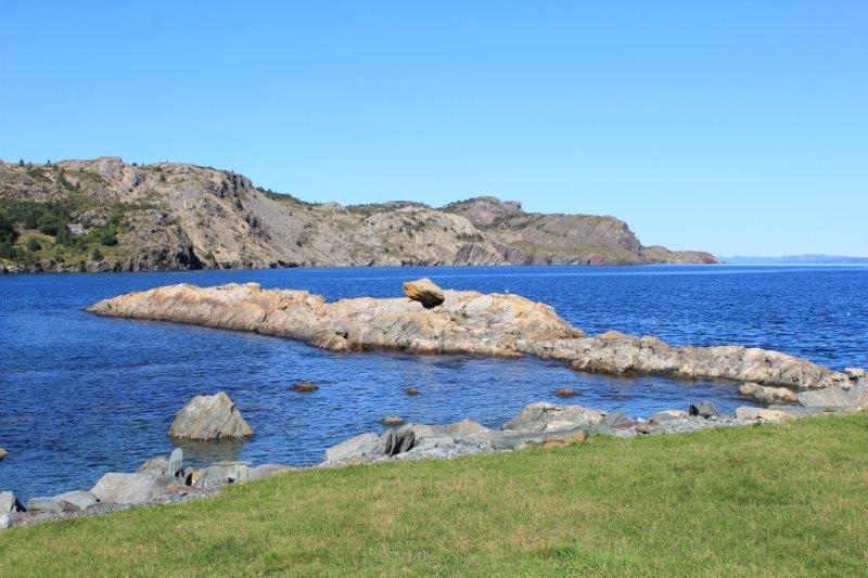 After we left Brigus we drove down Highway 90 to the southern tip of the Avalon Peninsula to Trepassey. The drive was through typical rocky shrub forest interspersed with many little ponds and lakes until we drove across a causeway at the bottom. Suddenly we were in a whole new place – we were in Saskatchewan or Manitoba. Flat, flat, flat. No trees, just grass and bushes as far as the eye could see. It was quite surreal! The coastline and the bays were lovely in the late afternoon sunlight.