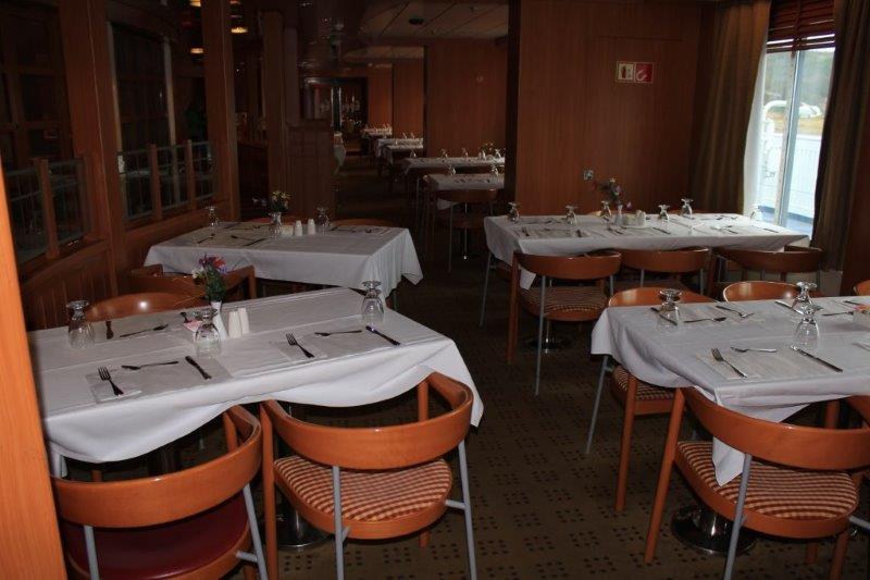After we dropped off our stuff we went down to the main public area on deck 7. Again – cruise ship. There is a large guest services counter, a casino (slots), a games room/library, a couple of shops, two bars, a hot dog snack counter, a buffet restaurant and an a la carte restaurant (the steak was yummy). This is the fanciest ferry I have ever seen.