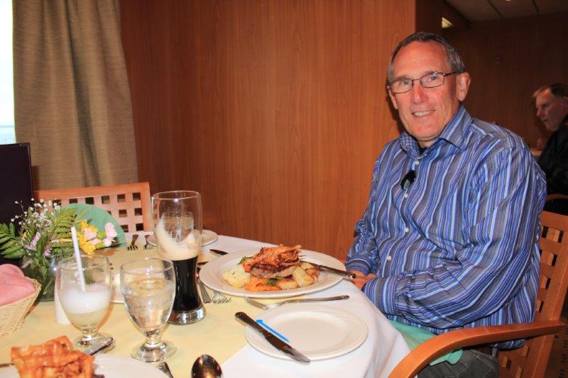 The sky is slightly cloudy, the seas are slightly choppy but I think there will be good sailing tonight. There is no internet on board (no need to have satellites pointing at wide expanses of open water. We are used to that on the cruise ships) so this will have to get posted sometime on the other side. Good night all – smooth sailing to you.