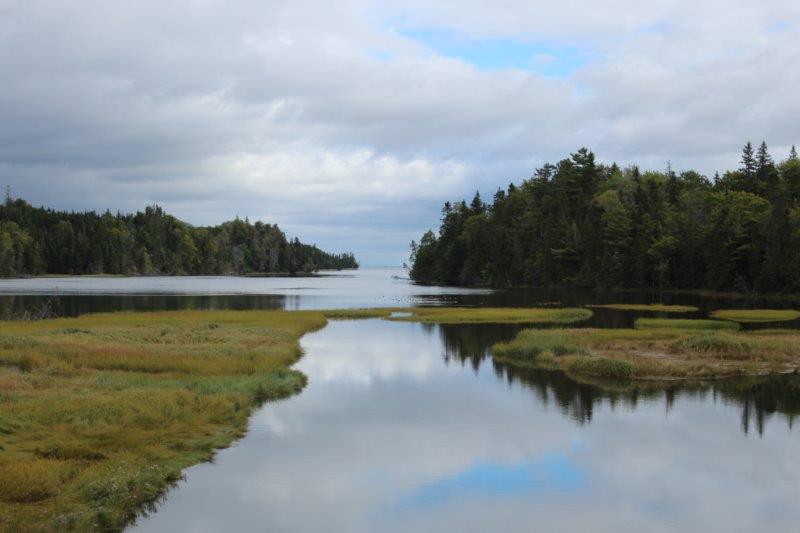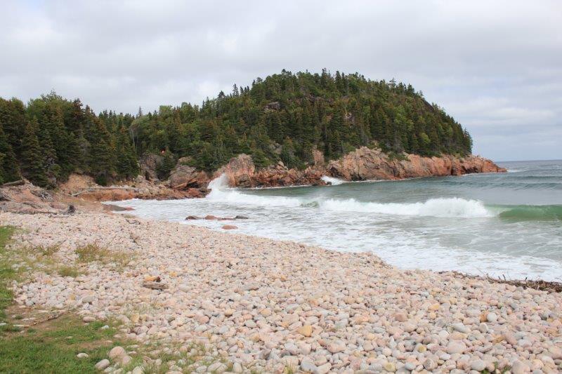 The sun broke through the clouds and we had nice light for most of our drive today; which was really good as it was a scenery day all the way. This side of the Cape Breton Peninsula is characterized by rocks, bluffs and beaches. The other side is winding mountain roads with 300′ cliffs. (That will be tomorrow’s fun)