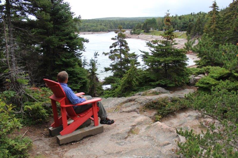 There are 10 red chairs scattered in Cape Breton Highlands National Park. We found one at least.