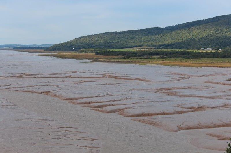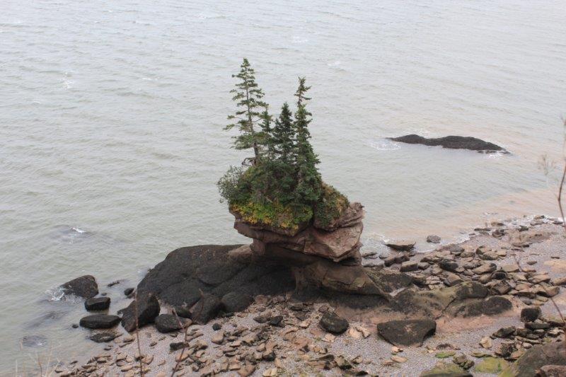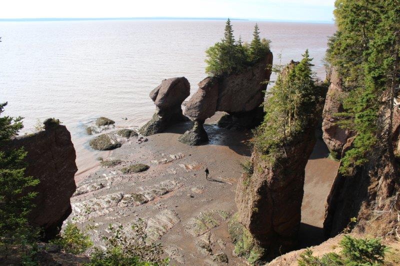 We had a repreive from the 6 am wake up call. Just as I was about to climb into bed last night I remembered that the sign at Hopewell Rocks said: Hours 9 am – 5 pm. There was no point arriving 1 1/2 hours before the place opened. We got up at 7:30 instead. We knew the tide would have been going out for about 3 hours by 9 am so were prepared for low water around the Flowerpots. Unfortunately there was even less water than we expected, but a lot of the ocean floor we walked on yesterday was still underwater this morning. (Later in the day we found out that even with the place closed people still walk down to the viewpoints. It is ‘at your own risk.’ but there is no problem. So we could have gone earlier after all.)
