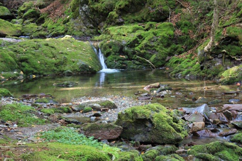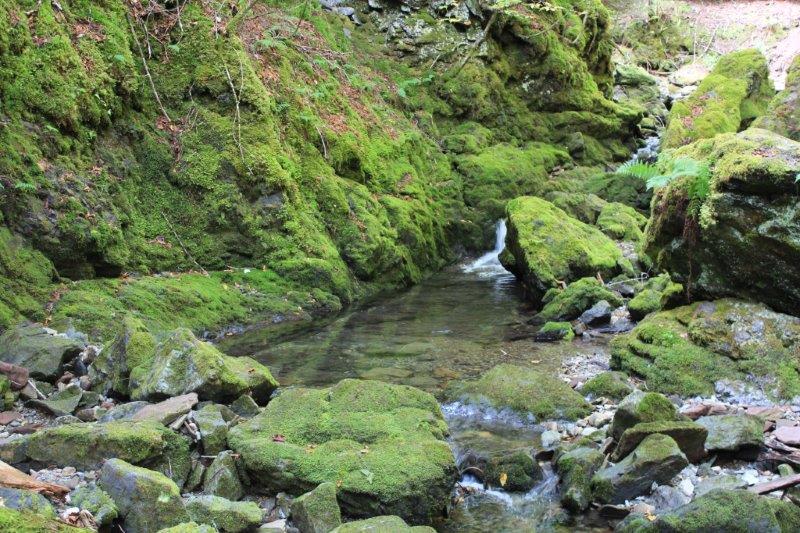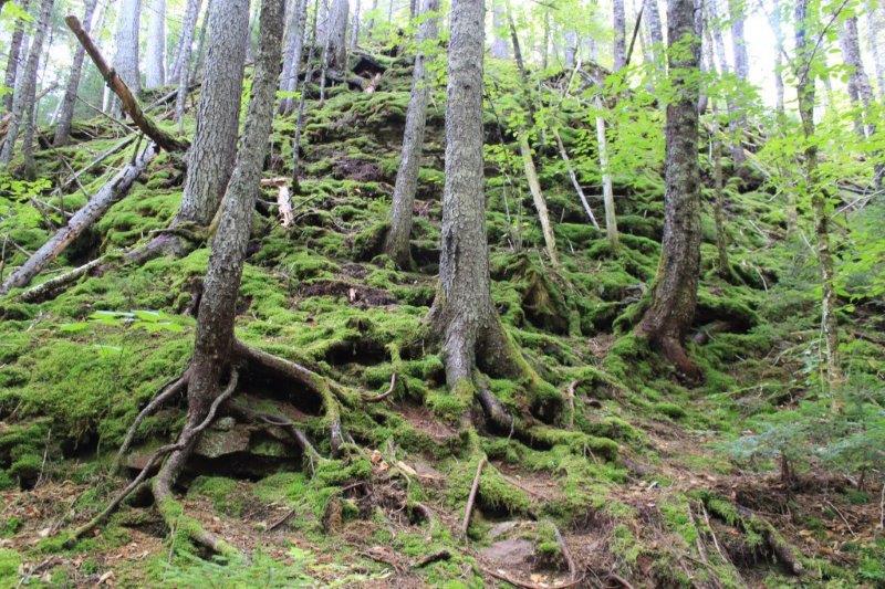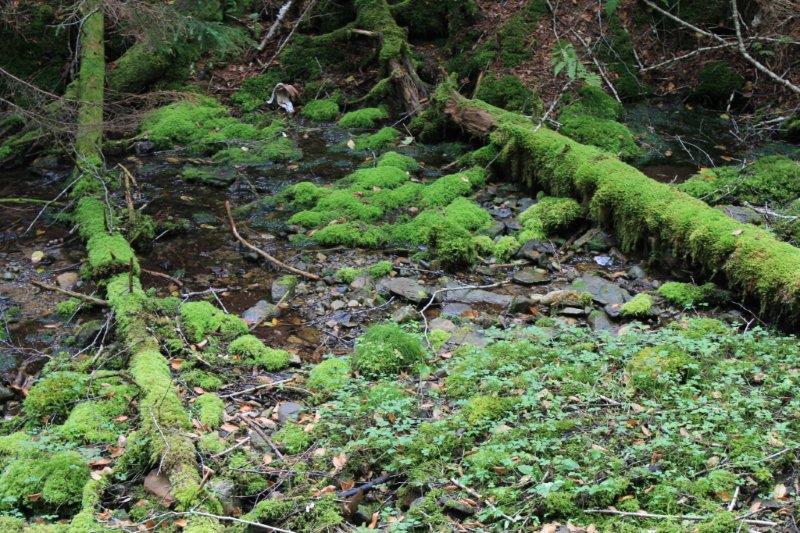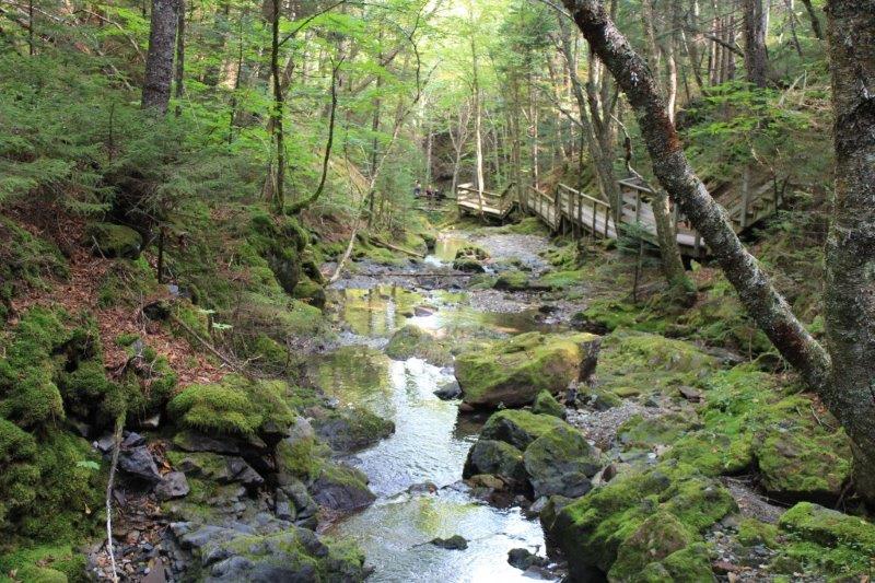 We drove to Fundy National Park (after we had breakfast). I have heard so much about the world’s highest tides at Fundy that I expected lots of viewpoints overlooking the water. Not. Access to the coast or to views of the coast are usually at the end of a 4-11 km hike. We did do two short walks: the first was through lovely, mossy forest down many, many steps to Dickson Brook and Falls – and back up again.