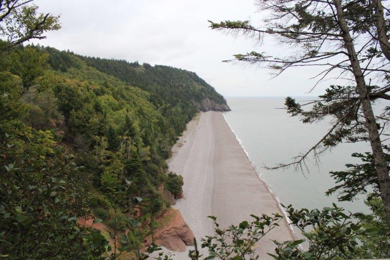 The Fundy Trail is not a National Park nor a Provincial Park. It is operated by a private company and you must pay to access it. The Trail is 16 km long (they are busy expanding it) and you can drive, bike or hike. There are numerous viewpoints for the car folks, short to long hikes for the actively fit crowd and 11 parking lots where you can leave your car to bike sections of the trail if you don’t want to do the entire distance in and out again. And, trust me you would’t want to. There are hills at 15%, 13% and 10% grade – with hairpin turns.