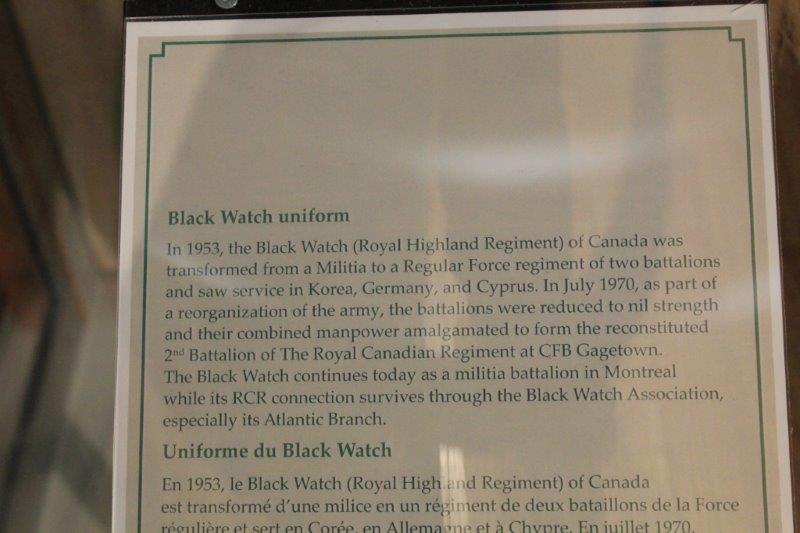 After Gagetown we arrived at Oromocto and the home of Canadian Forces Base Gagetown, one of the largest military training areas in the British Commonwealth. It is home to the New Brunswick Military Museum. Unknowingly we entered the base through a secondary entrance and it took awhile to locate the museum. Once we did we had a very enjoyable 2 hours. The museum has artifacts, uniforms, and memorabilia dating from the 1700’s to the present day. Everything relates to military operations or engagements by New Brunswickers. We were 2/3 around the main floor and a young soldier who is working on a WWI trench exhibit showed us that under many of the uniform display cases the drawers held items of interest as well. That doubled our time at the museum as I had to go back to the beginning and check out all the drawers!