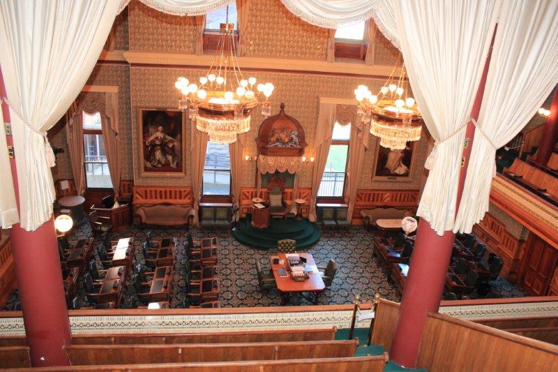 Today was just a wandering around day. We are in the Capital city of New Brunswick so, of course, we had to go to see the Legislative Assembly Building. The original Province House burned in 1880 and was replaced in 1882 with the current building. They offer a self-guided tour, which means you can wander around all you like – which we did.