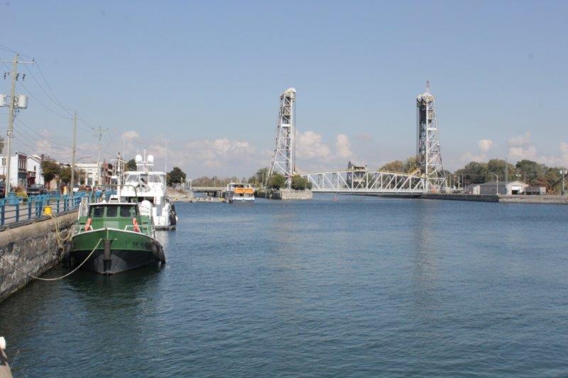 At Fort Erie we turned west along Highway 3 following the coastline of Lake Erie; although we were far enough inland we never saw it. Not far from Fort Erie we stopped at Port Colburne the entrance point to the Welland Canal that moves ships between Lake Erie and Lake Ontario. There were no ships going through the lock at the time but the lock at Port Colborne is one of the longest locks in the world.