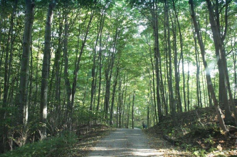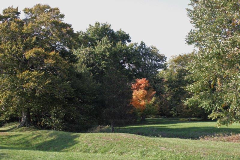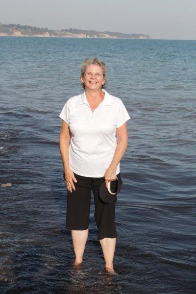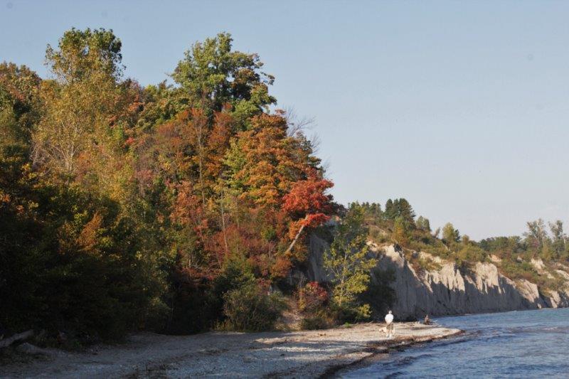 I needed to get to the coast of Lake Erie to stand in the water so we diverted southward off Highway 3. My map showed a Canada National Historic Site called Southwold Earthworks so when we saw the sign we stopped and checked it out. The wide, fenced path lead about 1/2 mile through a farmer’s cornfield to the site. This is where a village was built by the Neutral Amerindian group about 1500 . The village was surrounded by a double pallisade. All of the wooden posts have, of course, rotted away many years ago but the earthworks remain – the only example of the type in the world. Two archaeological digs have revealed thousands of clay artifacts. It is estimated about 800 people lived here for about 20 years. There was really nothing to see but a double row of bumps in a grassy area, but it is good that the place has been preserved. The Neutral Indians were wiped out by the Iroquois in the 1600’s so this is pretty much the only proof of their existence.