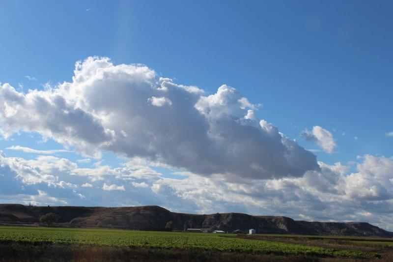 Yay, yay, yay there was a change in scenery again and stuff to see today! I loved all the coloured trees (as you could tell by the number of them in my posts) but we have been driving by coloured trees since leaving New Brunswick on September 22. I was happy to see the prairie yesterday and even happier to arrive at buttes and bluffs as we drove west in North Dakota today.