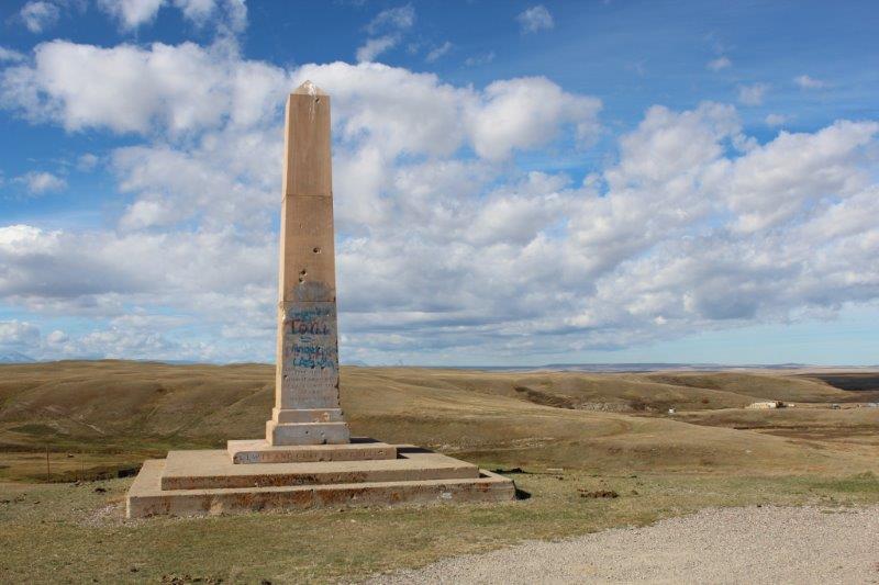It was a shame to see the graffiti all over the marker; but quite normal out here to see the bullet holes. There was a big shotgun shell hole in the sign about the Sweetgrass Hills. We have seen bullet holes in many of the road signs since we arrived in ‘the west.’ It seems anything is fair game for target practice – or just fun to shoot at.
