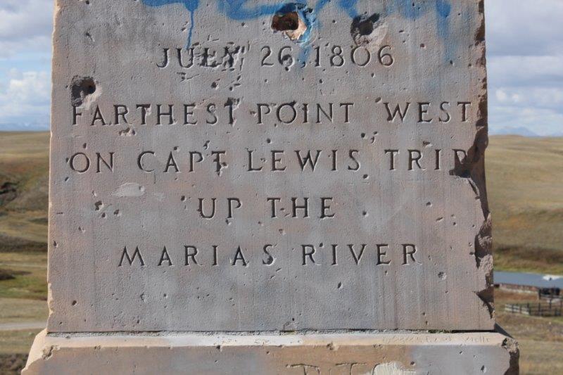 We stopped for lunch at the marker for Lewis and Clark’s furtherest western exploration of the Marias River (this exploration was originally to find the headwaters of the Missouri River which they hoped was as far north as 50 degrees latitude. According to the terms of the Louisiana Purchase the US received all the land south of the headwaters of the Missouri River. If the Missouri headwaters were north of the 49th parallel the US could claim some of the land of Canada that was being commercially used by the British. They discovered the Marias River headwaters instead – the Missouri River headwaters are west of Great Falls.)
