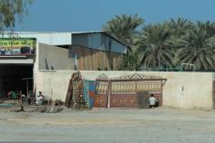 We saw two mild accidents, 17 camels and about 175 goats. The roadside shops parallel the road for miles out of Muscat. The towns just run together. Round-abouts are used and the middle of the circles are often filled with flowers and shrubs or a sculpture or a small building.