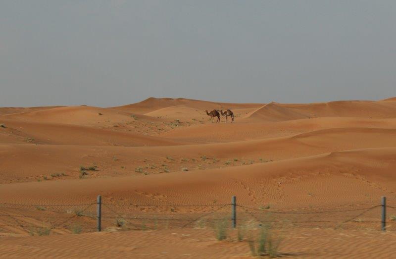 Once through all the check points at the border crossing (there were two going out of Oman and four going into the UAE) the scenery changes dramatically. Suddenly there are sharp craggy peaks, followed by bright reddish-golden dunes which give way to almost white sand and scrub trees and then, just over a small rise, Dubai.