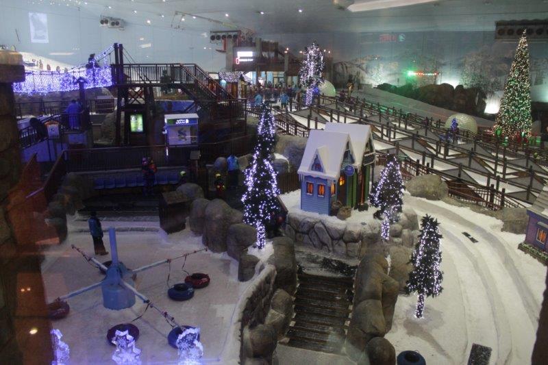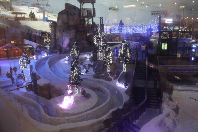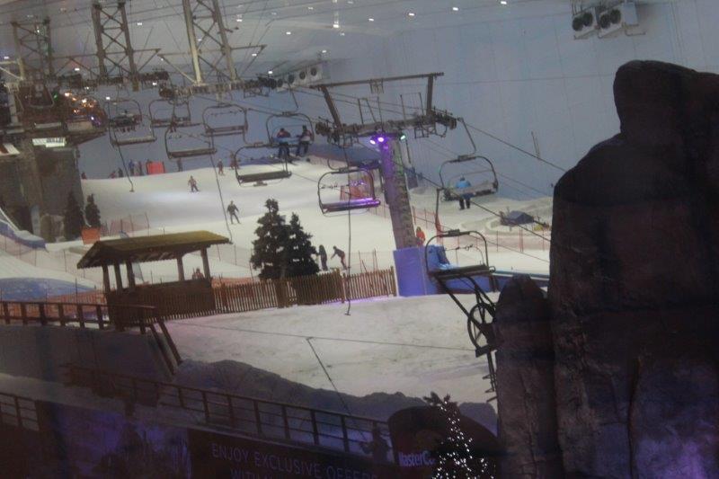 After we found the apartment we drove to The Lime Tree Restaurant for a bite to eat. Well, we really went there so Carrie could have her Triple Chocolate Brownie, but it was time for food anyway. Dubai is an ever-changing city and it was quite a challenge to navigate at times. Carrie kept having to re-envision the city map in her head to get us where we wanted to go. The final stop of the day was Mall of the Emirates, home to over 560 shops, 90+ restaurants, and the ski hill and winter fun center. The Mall and the ski center were beautifully decorated for Christmas. Dubai may be in a Muslim country but they know a commercial windfall when they see one.