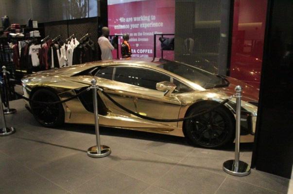 A gold Lambourghini.
