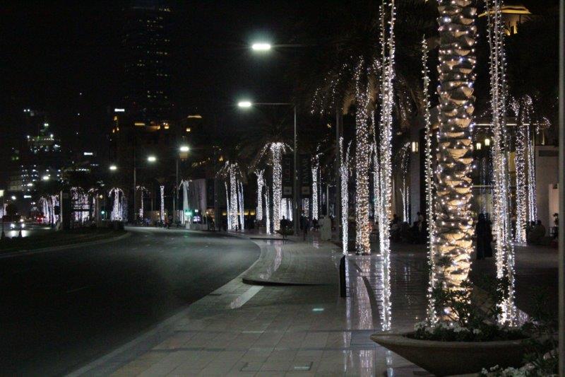 Again, Christmas decorations galore. Trish even got wished a Merry Christmas by a young man in the coffee shop. We wandered around, just idly looking – except for Trish who was on the prowl for a new pair of Converse shoes. The Dubai Aquarium and Underwater Zoo are located in the center of Dubai Mall but we did not take the time to check them out. Next trip maybe .