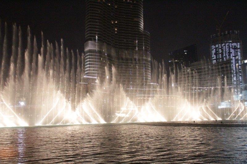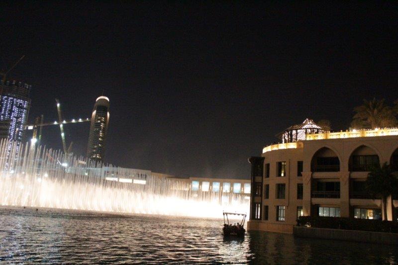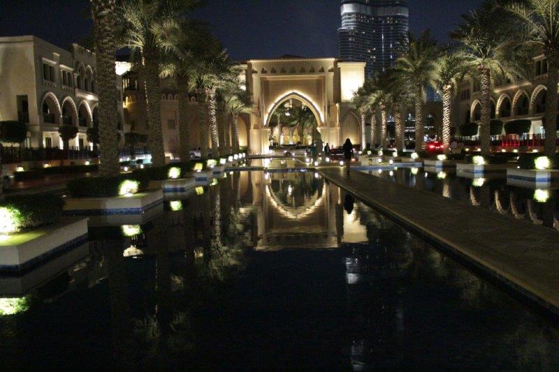 To cap off a fabulous day in Dubai we reserved a terrace table at Thiptara, the Thai restaurant Joseph and Carrie had taken John and me for my 60th birthday dinner a few years ago. The palm trees along the street are all strung with fairy lights so it made a lovely walk from our apartment to the restaurant. The lovely Dubai Fountain plays every half hour and we were close enough to feel the mist from the massive water propulsion.