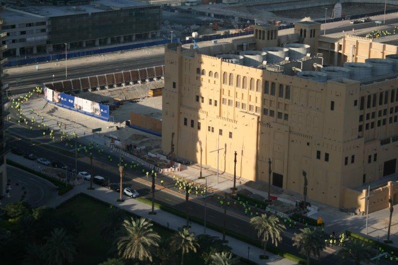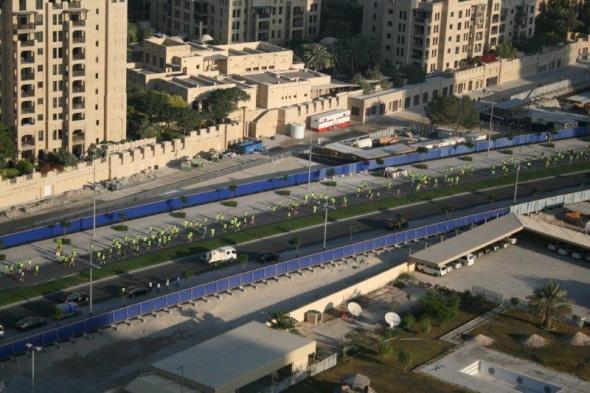 We were sitting in the living room waiting for the coffee to perk when Trish glanced out the window and saw a stream of neon yellow-clad runners going by on the street below us. Turns out the 10 km Nike Run Dubai started at 6 am. Over 25,000 runners participated last year and this year must be similar. Below us and between the buildings we could follow the entire route. The roads had been closed to traffic and the runners kept coming around the distant corner from the marshalling area for over an hour! Pretty impressive! And that is a lot of T-shirts.