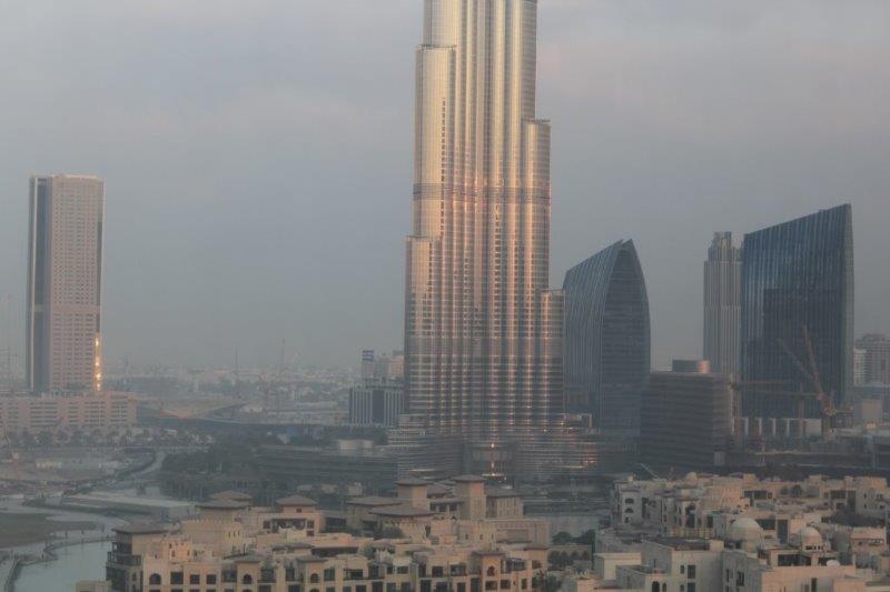 Once again Trish and I were awake early. She turned on the coffee pot at 5 am (Trish is clever enough to prepare it the night before so all that is needed is a switch flick) and I wandered out of our room somewhere near 6. The sky was just lightening with the dawn and within an hour there was a lovely golden glow on the lower level of the Burj Khalifa.