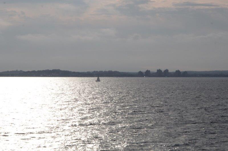 After the safety drill we went to the dining room for dinner. We were placed at a round table for eight with 2 couples from Florida (different areas – they didn’t know each other) and two ladies from Seattle. While we were at dinner the ship sailed backwards out of its berth in Boston and then turned around and we were on our way. We went on deck after dinner and took some photos and watched the skyline of Boston disappear.