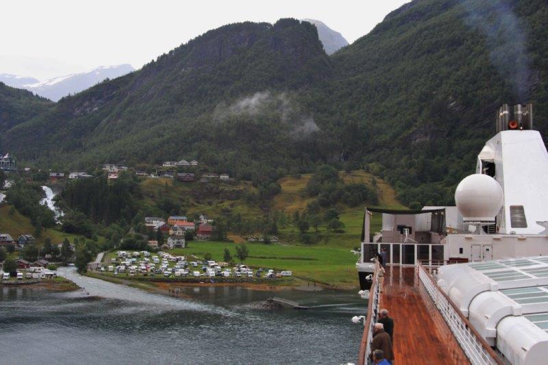 The Seven Sisters WaterfallIMG_8111  IMG_8113We putted slowly past a small ‘community’ – called Grande after the family that orignally had a farm on the site – with a hotel and lots of trailers and campers and further on to the end of the bay to the main town of Geiranger (pronounced like HAIR but with a hard G like in GUARD and a syllable break before the ANGER which is pronounced just like ANGER – so, GAIR-ANGER).