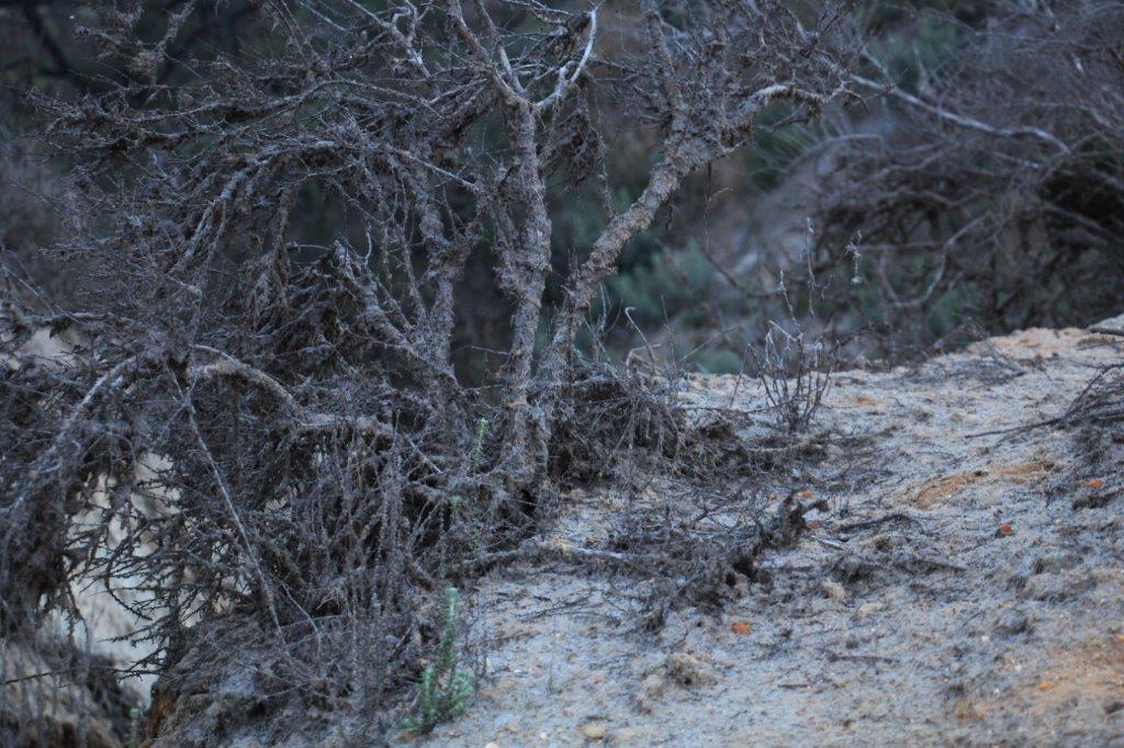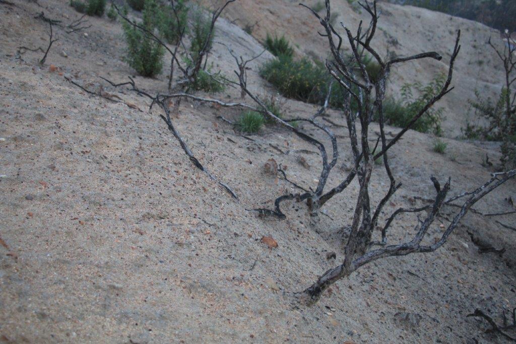 There had obviously been a fire in the area as there were many gnarly, blackened shrubs and bushes.