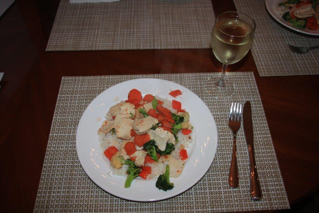 It didn’t take us long to chop some veggies, dice some chicken and make a yummy stir-fry for dinner.