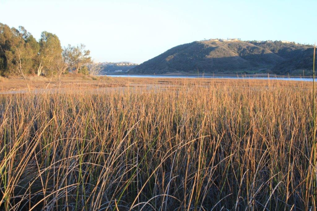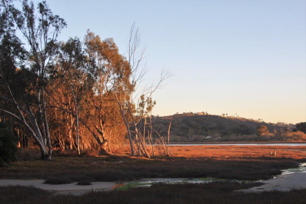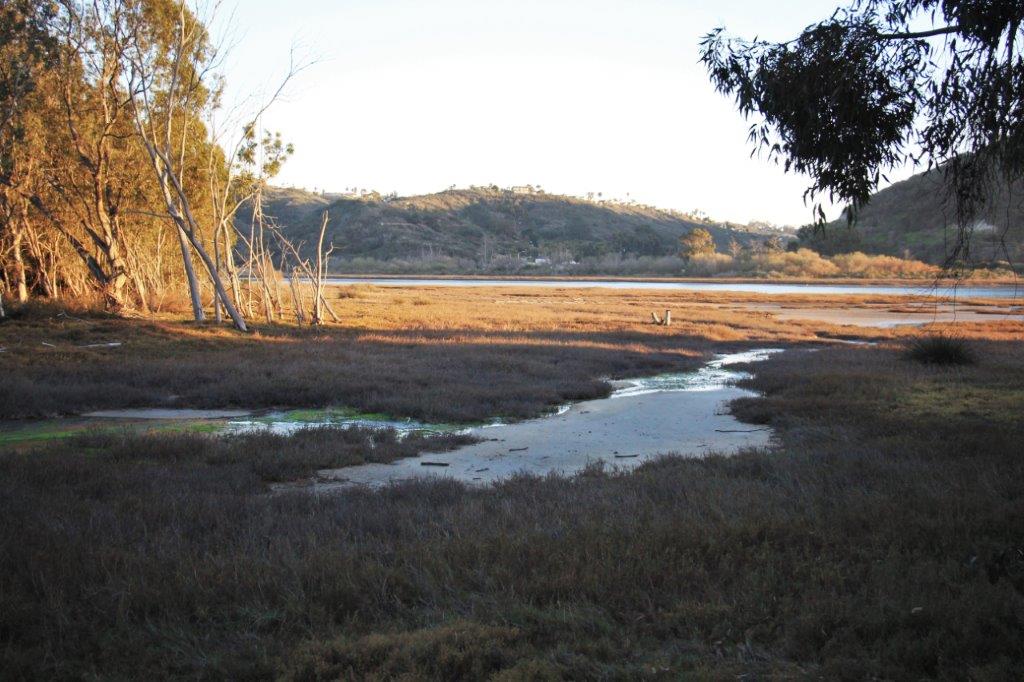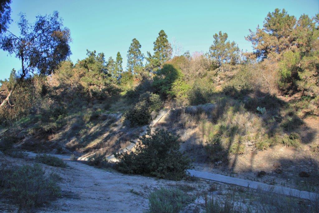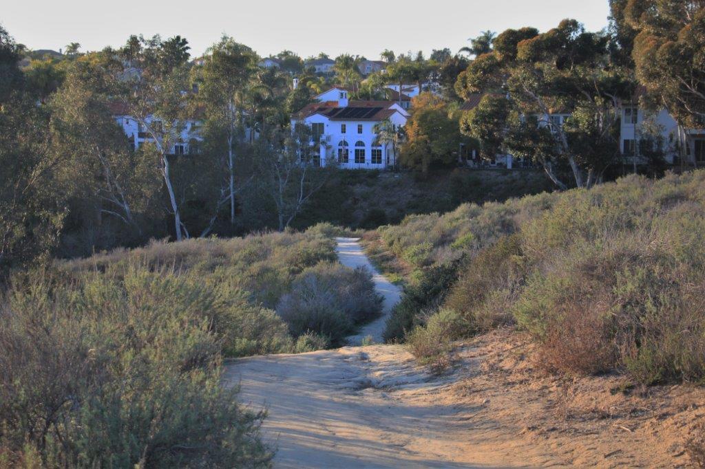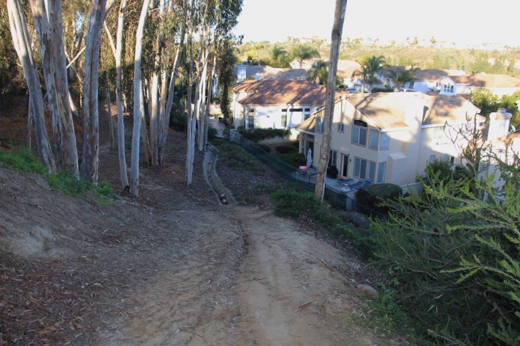 The Aviara Parkway is just beyond the trees at the top of the bank.